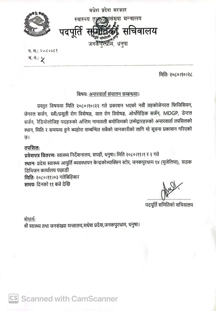 नवौं तहको अन्तरवार्ता सम्बन्धमा २०८०।१०।२८